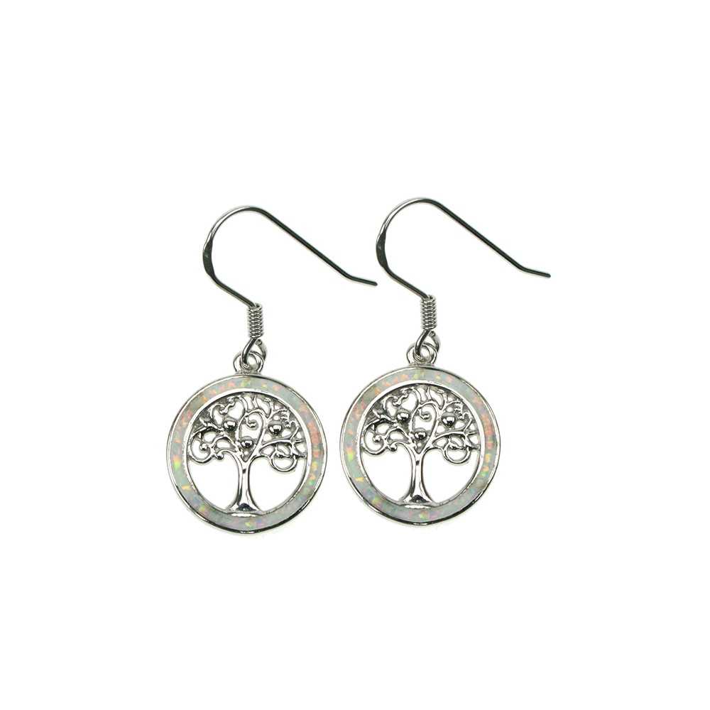Livets Træ Opal øreringe Med Hvid Sne Opal Sten 925 Sterling Sølv Rhodium Belægningøreringe