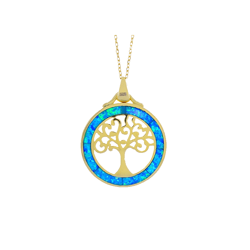 Livets Træ Opal Livets Træ Smykke Halskæde Vedhæng Med Blå Opal Sten 925 Sterling Sølv & Rhodium Belægning